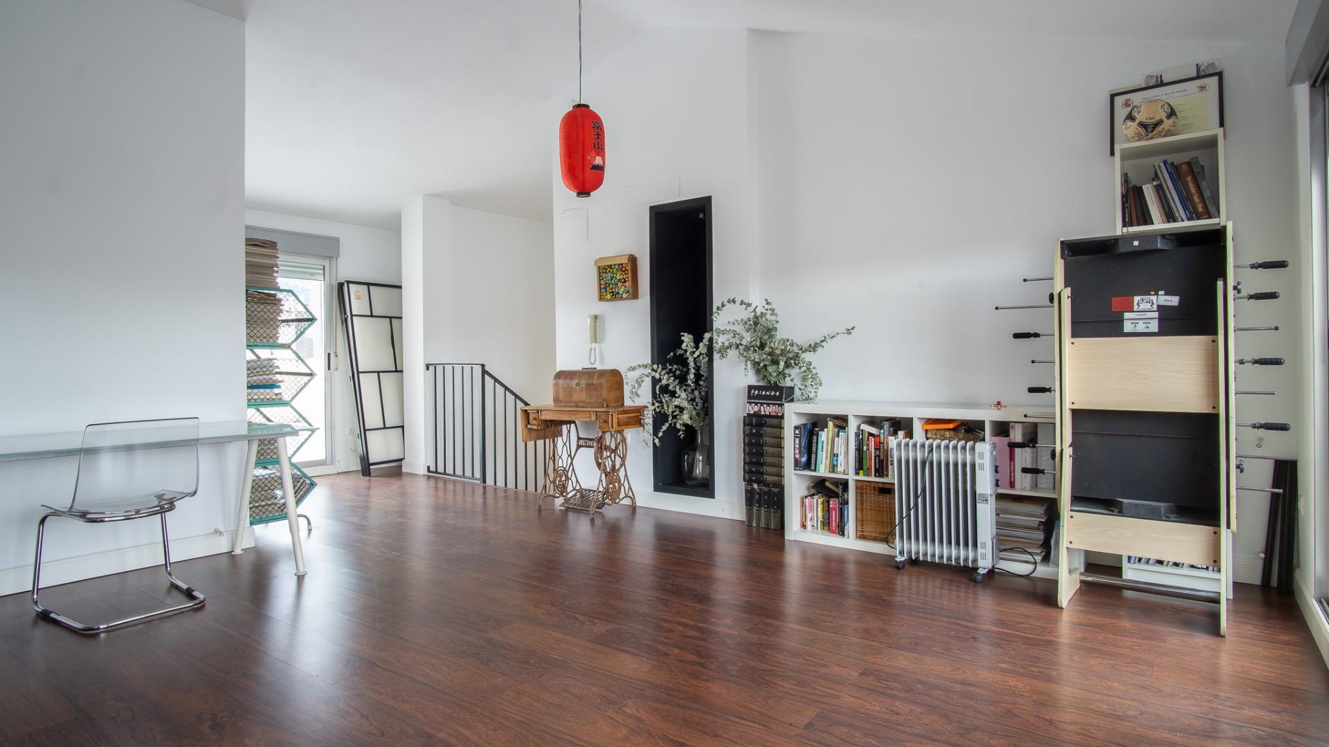 Planta superior: Amplio salón diáfano con gran potencial de adaptación, con espacio suficiente para crear dos dormitorios adicionales. También dispone de un baño completo.