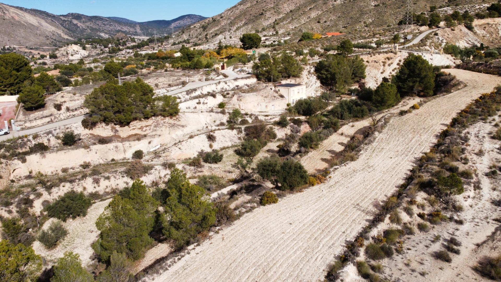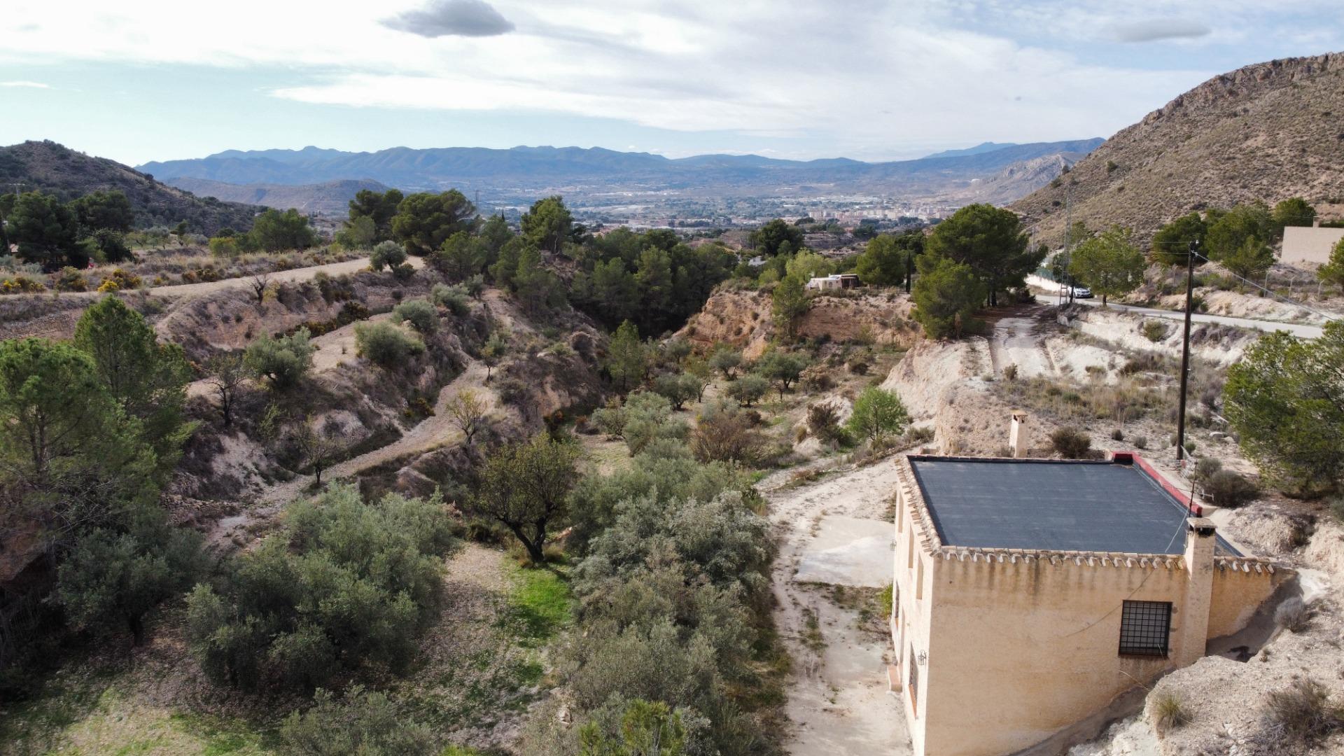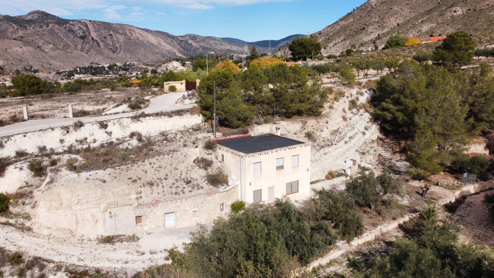 Se trata de una finca que cuenta con 11.581 m2 de terreno rústico, con una vivienda de dos plantas que suman 148 m2, además de una casa cueva de aprox. 30 m2.