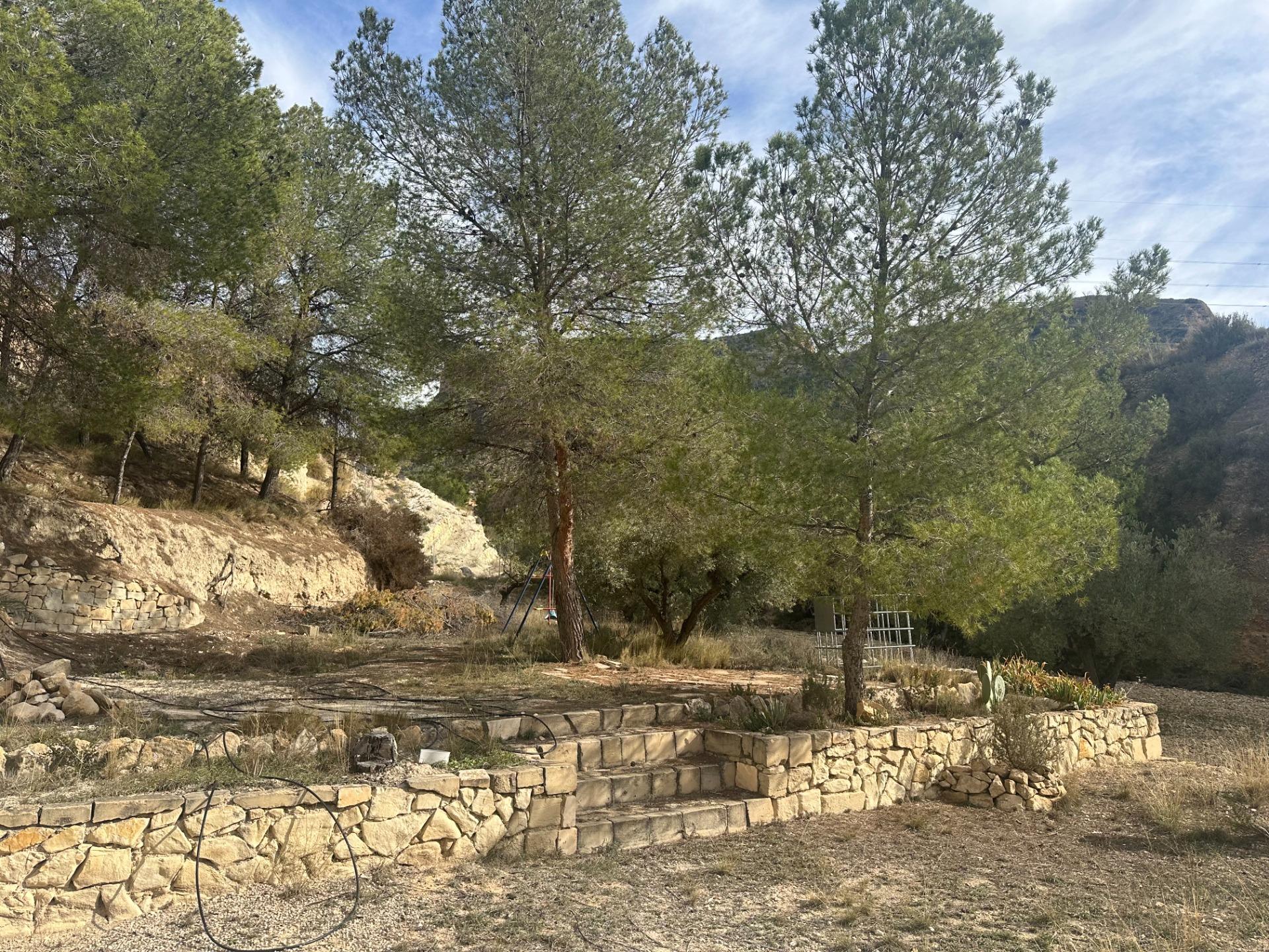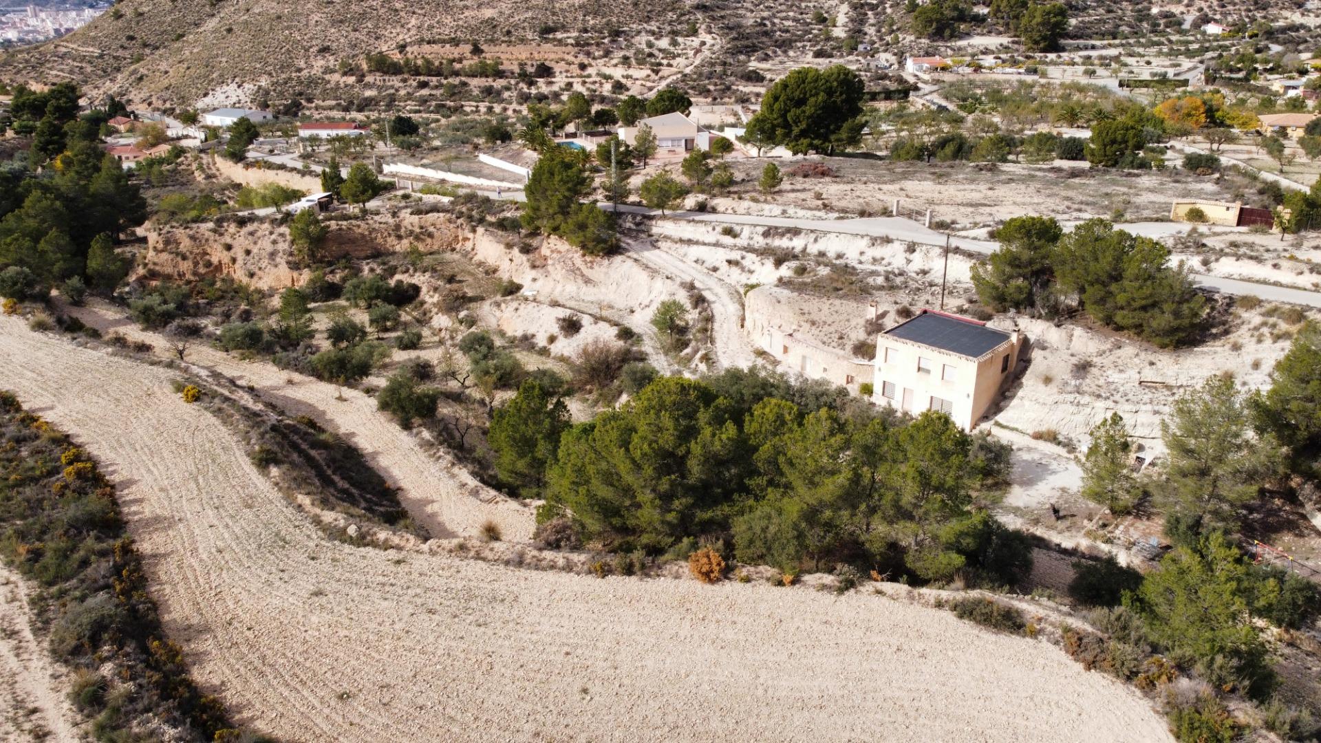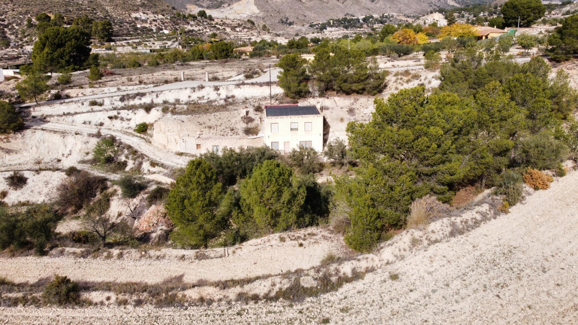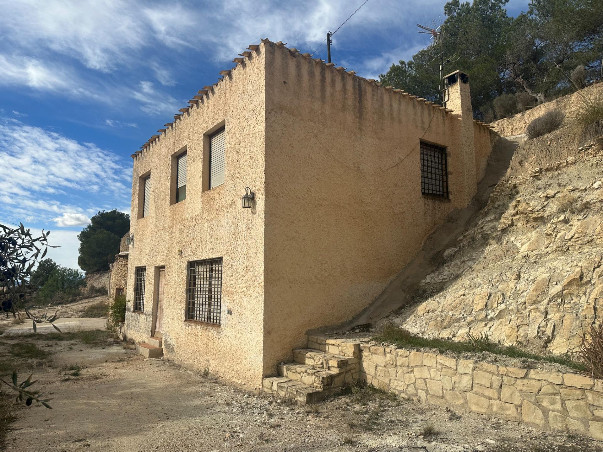 Se trata de una finca que cuenta con 11.581 m2 de terreno rústico, con una vivienda de dos plantas que suman 148 m2, además de una casa cueva de aprox. 30 m2.